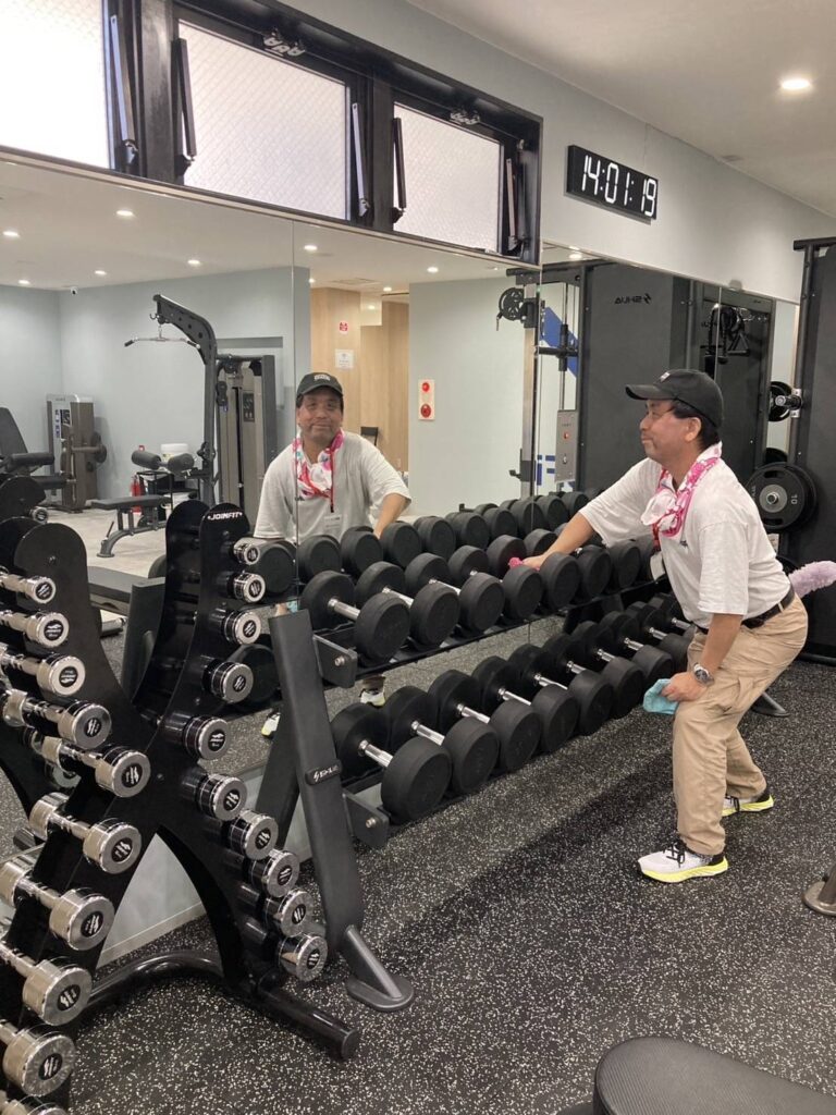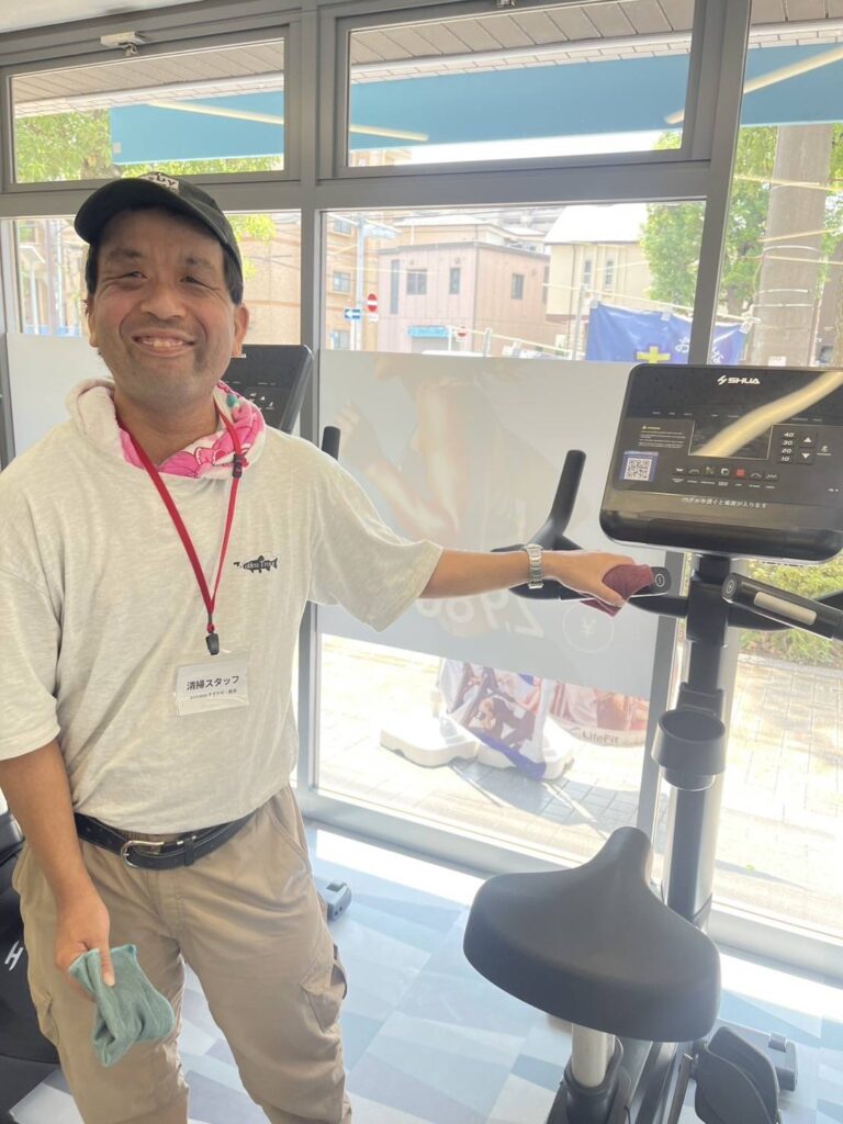 週3〜4の半日交代制で、フィットネスジムの清掃作業を行っております☆