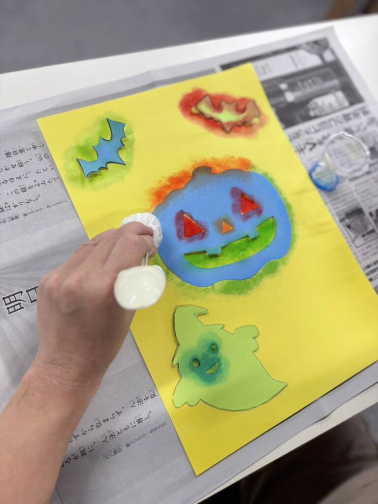 好きな色画用紙を選ぶ所から、配置や絵の具の色決め…!自作ぽんぽんで色をつけて💭