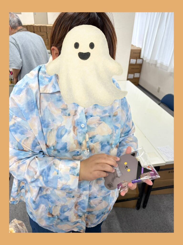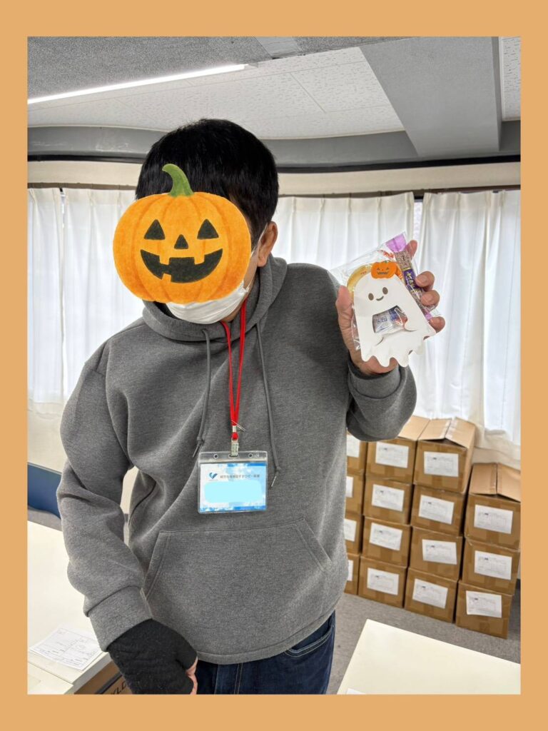 お昼休みには、利用者の皆さんにハロウィンのお菓子をプレゼント!