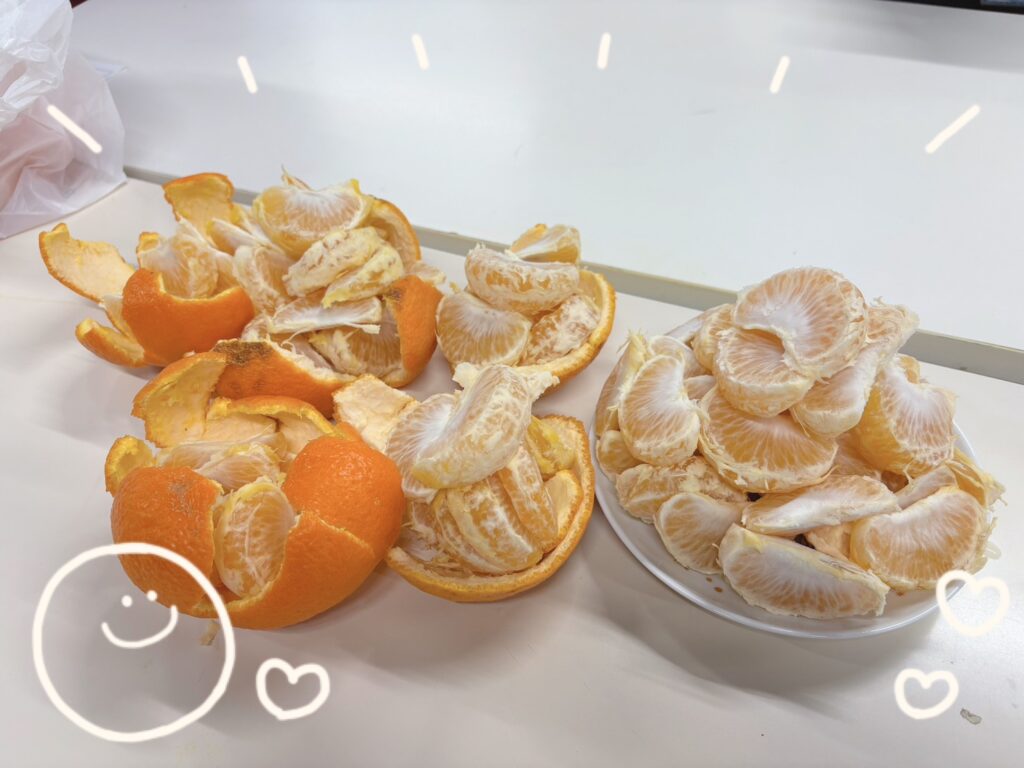 今回のブログは…通所されている利用者さんのご自宅で、立派に育ったオレンジを下さり、みんなで昼休みにいただきました😋